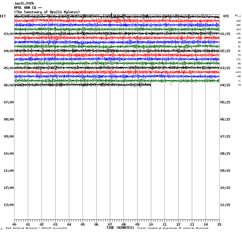 Network: CQ Max Clock Drift: 0 s Station: APOL Comment: Location: -- Flags: T Channel Code: HHN Data Format: Steim Index: 2 Sensor: trillium120PA Azimuth: 0° Instrument: centaur-3_10841 Dip: 0° Channel Response: CQ.APOL.HHE Depth: 0 m Valid From: 2023-12-20 07:00:00 UTC Sample Rate: 100.0 Hz Valid To: forever